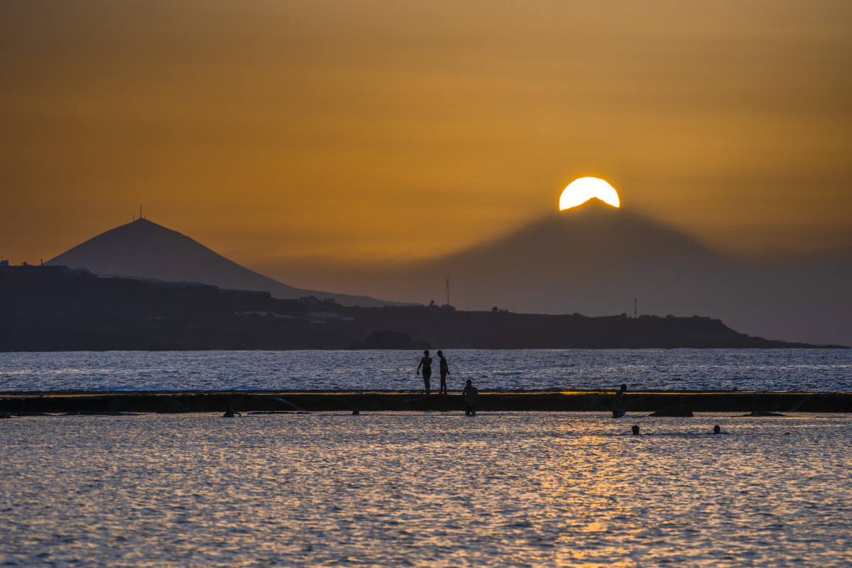 Las Canteras beach offers options for every day: from a quiet swim or a stroll along the shore, to sports activities in and out of the water or family plans. The seafront promenade concentrates the gastronomic and leisure offer. As an added attraction, its sunsets usually offer the silhouette of Tenerife and the imposing figure of Mount Teide on the horizon.