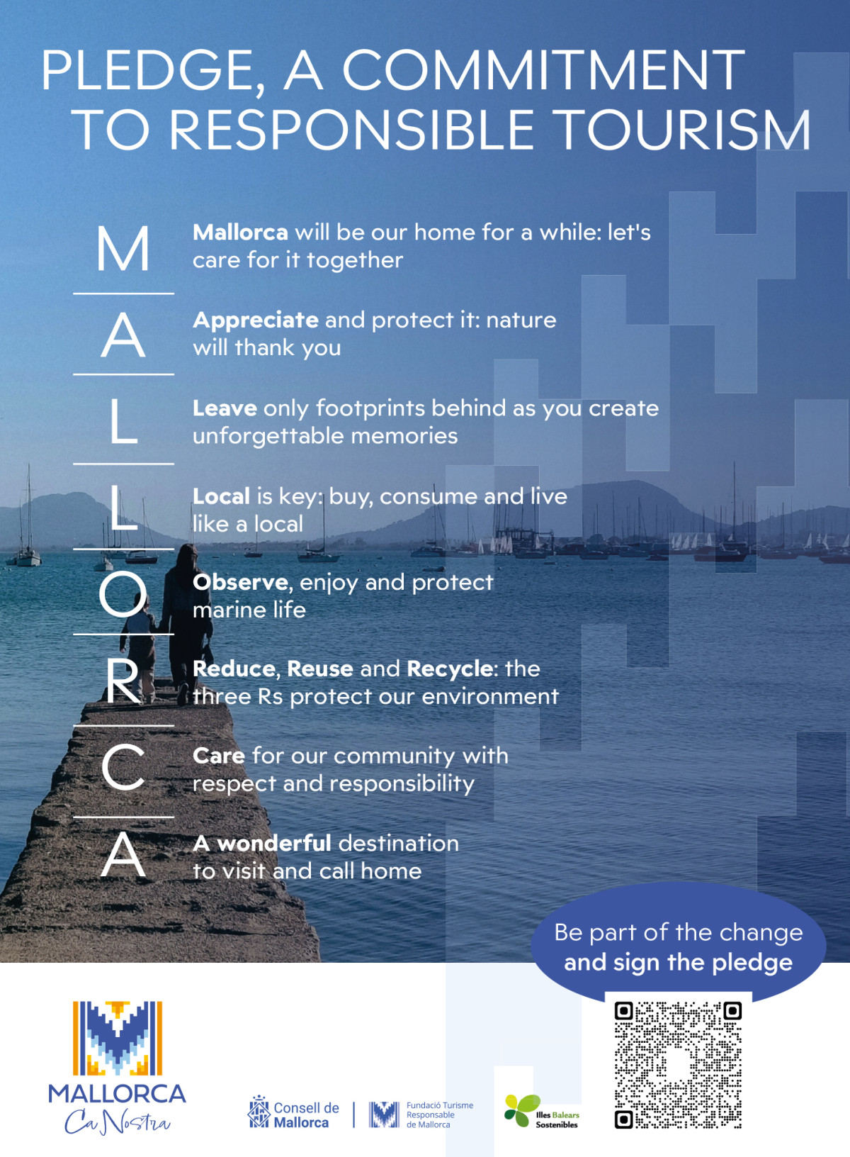 The message is as simple as it is powerful: Mallorca will be our home for a while; let's take care of it. From there, the commitment translates into concrete actions: picking up litter, respecting ecosystems, using sustainable transport, supporting local consumption, protecting marine life and maintaining a respectful relationship with residents. Every gesture counts, and each person who signs the Pledge accepts the responsibility to protect the island, not just admire it.